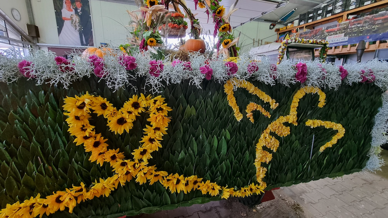Unser Erntewagen wird dem Thema entsprechend geschmückt.